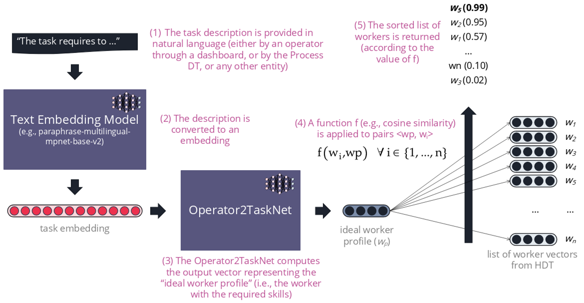 The AI pipeline implemented by the Operator2Task Assignment module